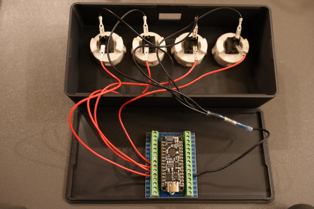 Design: The standard design includes four monochromatic high-quality arcade style buttons with a black 3d-printed case. The device can be connected to a PC using an USB-C to USB-A (included) or USB-C connector. The device will register as a serial device and compatible with a wide variety of software packages including Presentation, MATLAB, and ePrime. Please contact us if you are interested in any customization.